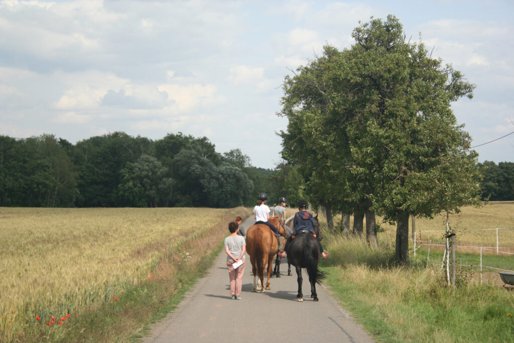 Ein Besuch in Wienrode, einem Ortsteil der 20.000-Einwohner*innen-Stadt Blankenburg, gelegen am östlichen Rand des Harzes. 800 Menschen leben hier, aber an diesem Sommertag im Juli ist kein Mensch auf der Straße zu sehen. Steffi Halupnik, hennarotes Haar, schmale Jeans und Turnschuhe, öffnet das Tor ihres alten, denkmalgeschützten Vierseithofs an der Langen Straße, die einmal quer durch den Ort führt. Die Psychologin leitet die Reitgruppe von Merle und den beiden
