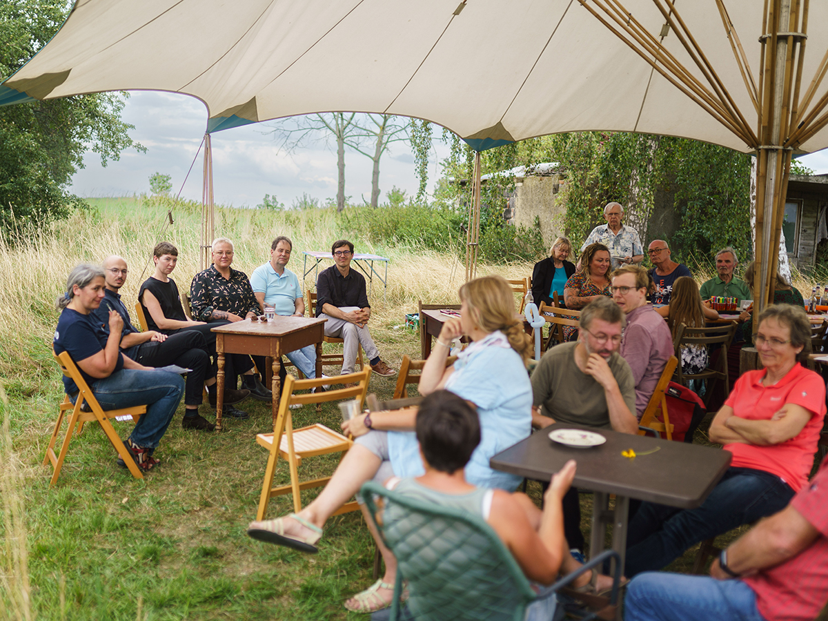 Ein Wiesenfrühstück am Hof. Dann ein Netzwerktreffen, welches engagierte Menschen, neue und alte Landakteure und Macher*innen aus der Region Altenburger Land zusammenbrachte. Es ging vor allem um das persönliche Kennenlernen, um Erfahrungsaustausch und offene Gespräche und um Verabredungen für zukünftiges gemeinsames Handeln.